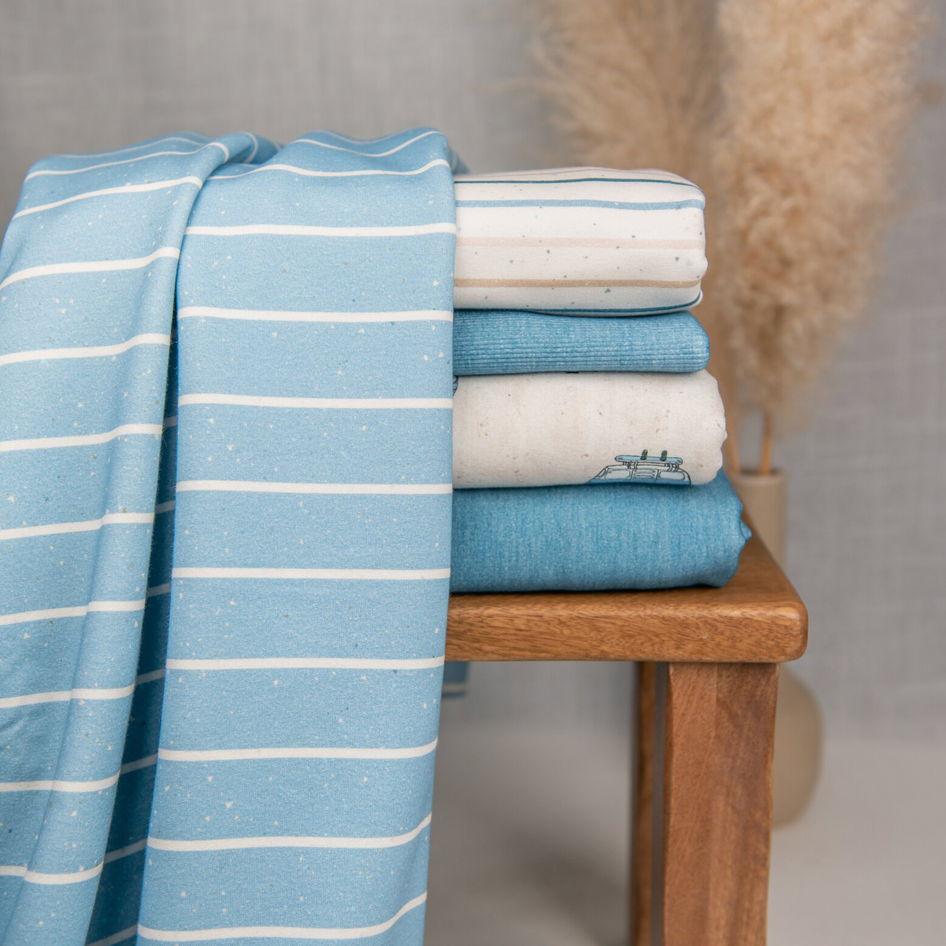 Unsere Designs werden mit dem Reaktivdruckverfahren auf die Stoffe gedruckt, wodurch einem super cozy Look nichts mehr im Wege steht.