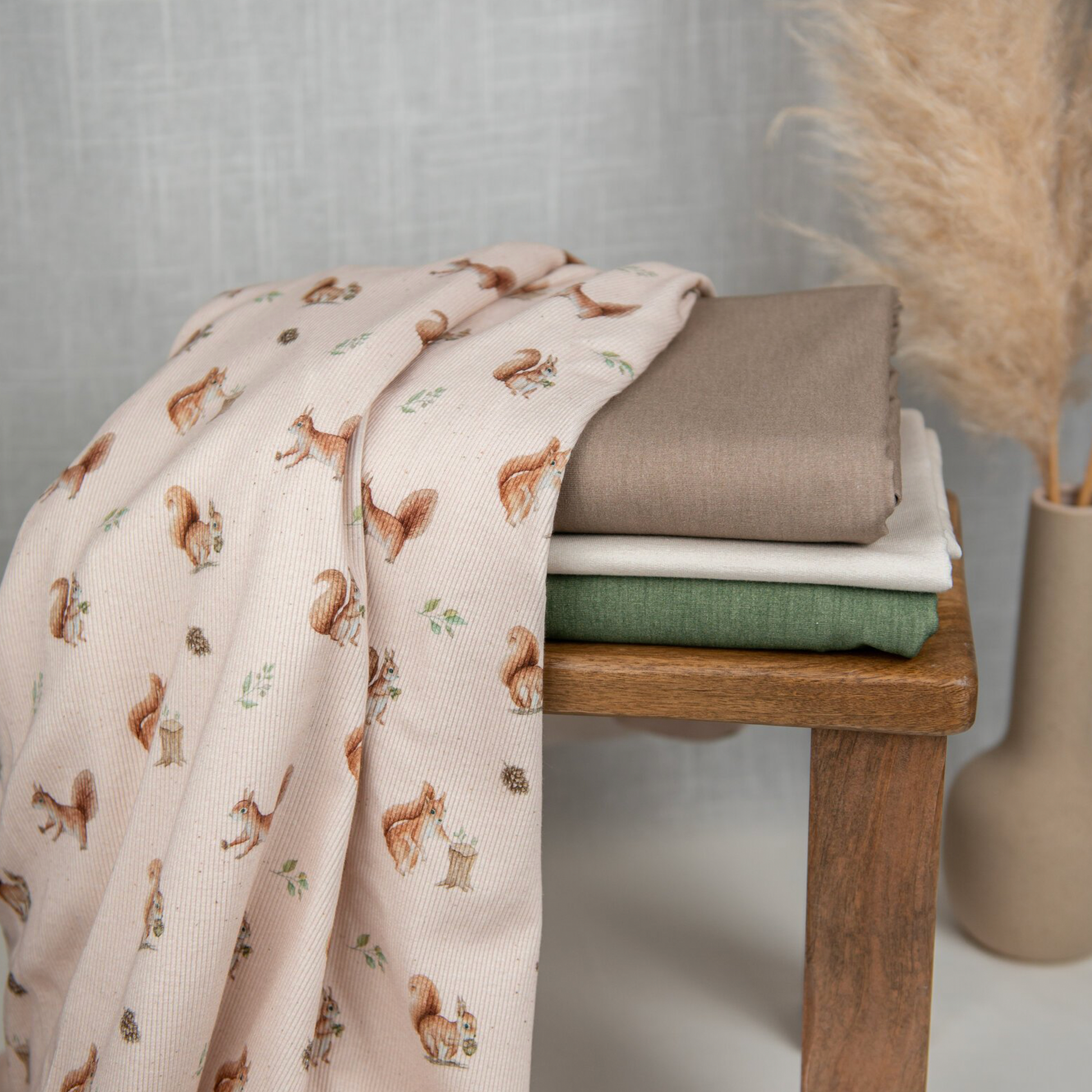 Dieses Design erstrahlt in wunderschönen Naturtönen und bietet eine perfekte Kombi Möglichkeit für unsere anderen Designs. Aber auch alleine ist dieser Stoff ein richtiger Hingucker.